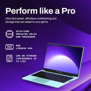 - Primebook 2 Pro – Technical Specifications Brand: Primebook Model Name: Primebook 2 Pro Screen Size: 14.1 Inches Colour: Aqua Processor (CPU): MediaTek Helio G99 RAM: 8GB LPDDR4X Storage: 128GB UFS (Expandable up to 1TB via microSD) Operating System: PrimeOS 3.0 (Android 15-based) Graphics: Integrated Special Features: Anti-Glare Coating, Backlit Keyboard, Lightweight Design, Memory Card Slot